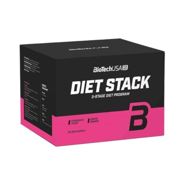 Diet Stack de BioTech USA es un paquete con tres suplementos diferentes enfocados a facilitar la pérdida de peso de las chicas.