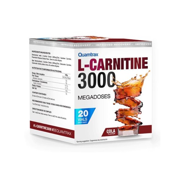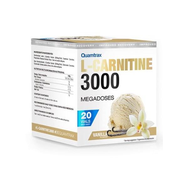 L-Carnitine 3000 de Quamtrax Nutrition es un suplemento en cómodos viales monodosis líquidos que contiene uno de los aportes más altos de L-carnitina del mercado ya que proporciona 3.000 mg de L-carnitina de la mejor calidad para asegurar la máxima conversión grasa en energía.