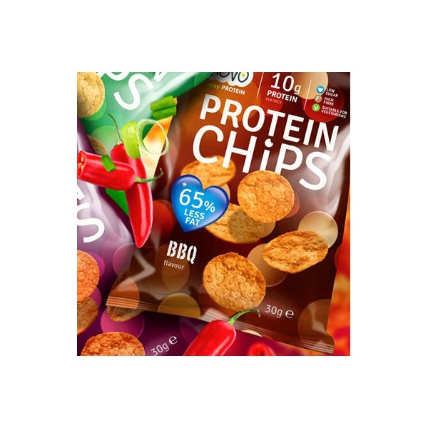 Con los nuevos Protein Chips podrás hacer mucho más entretenido un partido de futbol, una fiesta o una película, porque seguro que no podrás parar de comerlas. Cuando tomas unas chips convencionales sucede que mientras la bolsa se va vaciando, te puedes ir olvidando de lucir un cuerpo esbelto en la playa. Esto ahora se ha acabado. Te presentamos una versión de los clásicas chips que son completamente compatibles con el bañador y el biquini!