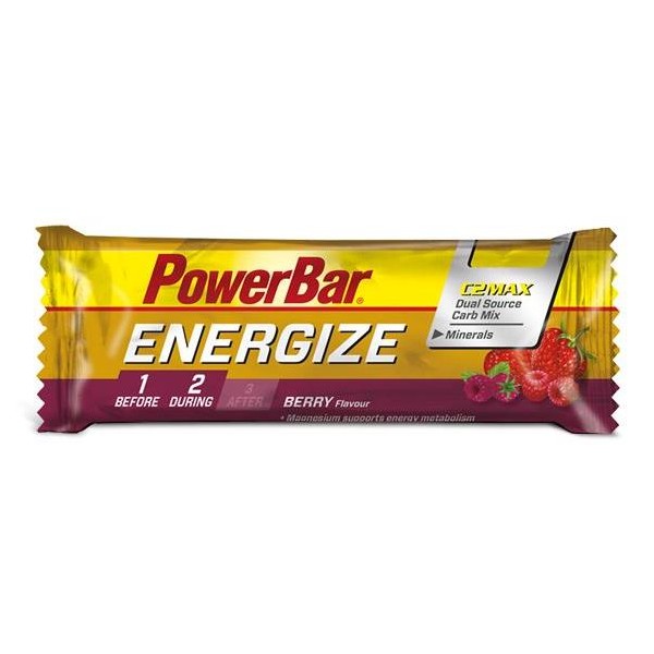 PowerBar Energize son unas deliciosas barritas energéticas de 55 gramos perfectas para suministrar energía y electrolitos antes y durante el entrenamiento.