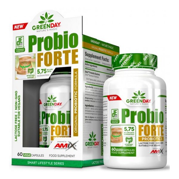 Probio Forte de Amix es un suplemento en cápsulas vegetales que contiene una poderosa combinación de 7 cepas de bacterias beneficiosas para nuestro organismo, favoreciendo el equilibrio de la microflora intestinal.