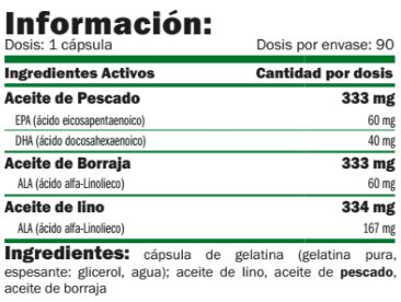 - Procedente de tres fuentes diferentes: aceite de pescado, aceite de borraja y aceite de lino.