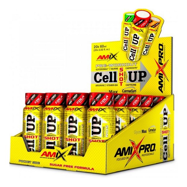 CellUp® Shot de Amix™ Advanced Nutrition es un potente pre-entreno en formato líquido de rápida acción ideal para tomar antes de los entrenamientos de alta intensidad.