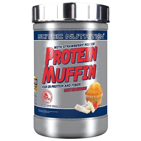 Protein Muffin de Scitec Nutrition es un suplemento en polvo con el que podrás preparar de forma sencilla unas deliciosas magdalenas de chocolate con trozos de naranja o de chocolate blanco con coco y trozos de fresas altas en proteína y en fibra pero bajas en azúcar al mismo tiempo.