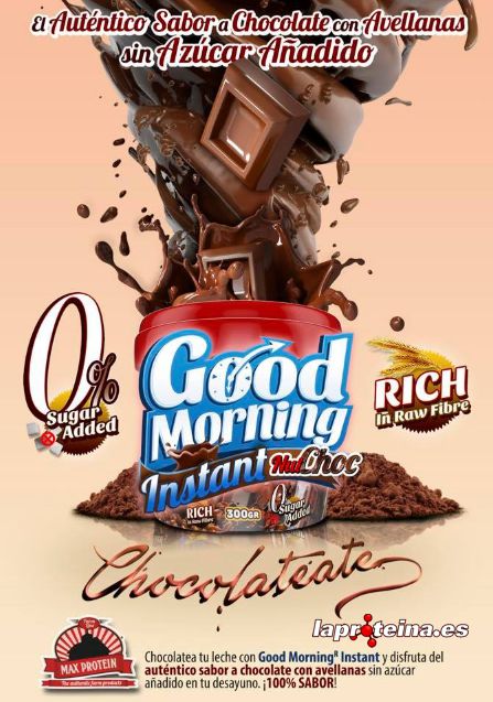 Good Morning Instant NutChoc de la línea Max Protein de Universal McGregror es un inmejorable y novedoso suplemento en polvo instantáneo con sabor a chocolate con avellanas con el que podrás preparar un delicioso desayuno con un excelente valor nutricional.
