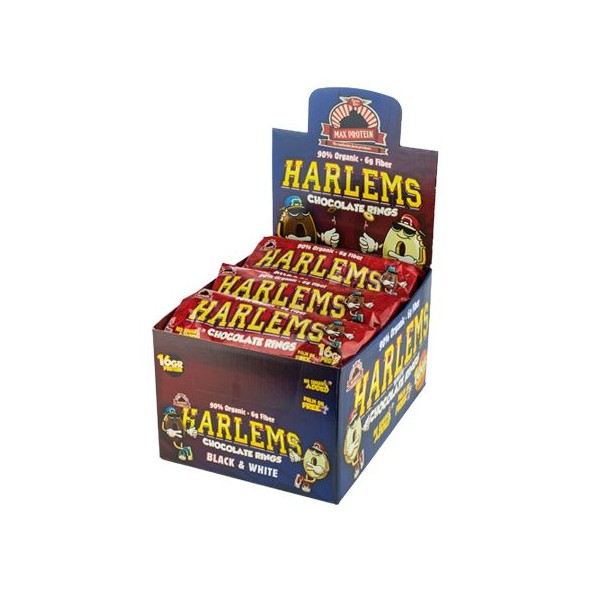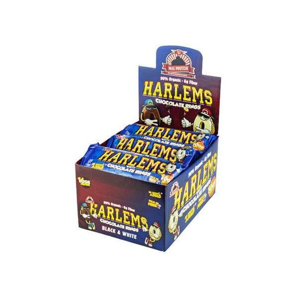 Harlems de Max Protein son unas deliciosas rosquillas crujientes bañadas en una suave y fina capa de chocolate desgrasado con un 16% de proteínas de alto valor biológico, un 90% ecológicas y sin azúcares añadidos.