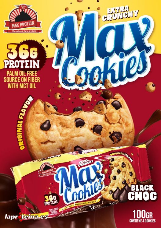 Max Cookies es un bocado delicioso que puede ayudarte a cubrir tu cuota dulce de una forma sana, para evitar desear comer golosinas saturadas en azúcares que te harán engordar. Una galleta contiene proteínas que se digieren con más facilidad que los hidratos de carbono. Y por otro lado, ofrecen el sabor delicioso de una galleta dándote un placer ocasional que puedes y te mereces disfrutar de vez en cuando. Es dulce y saludable, por lo que no hay razón para dejar de lado un tentempié como este que mantiene tu figura y contribuye a tu organismo con ingredientes que favorecen tu nutrición. Pruébalas después de ejercitarte. Tenlas a tu disposición para comer saludablemente durante una merienda, o cuando deseas ingerir algo sano lejos de casa.