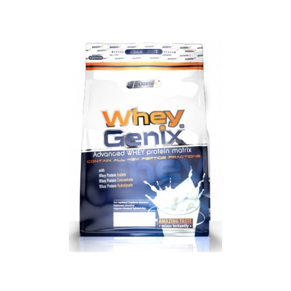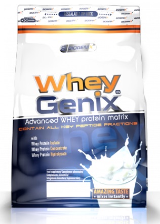 Whey Genix® contiene una matriz proteica avanzada basada en el concentrado de proteína de suero de leche (WPC), el aislado de proteína de suero de leche (WPI), y en el hidrolizado de proteína de suero de leche (WPH). Estas tres fuentes son exactamente las fuentes proteicas con el mayor valor biológico posible, lo que las coloca como la mejor elección para una solución dietética. Un alto valor biológico significa que la proporción de aminoácidos requerida por el organismo es excelente para hacer uso de ella. Específicamente, se mide la cantidad de nitrógeno que es retenido en el cuerpo, que luego es utilizado para labores de regeneración y crecimiento muscular.