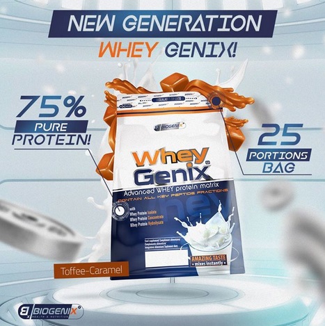 Whey Genix® de Biogenix Health & Nutrition es un suplemento en polvo que contiene una mezcla proteica avanzada que combina concentrado, aislado e hidrolizado de proteína de suero de leche.