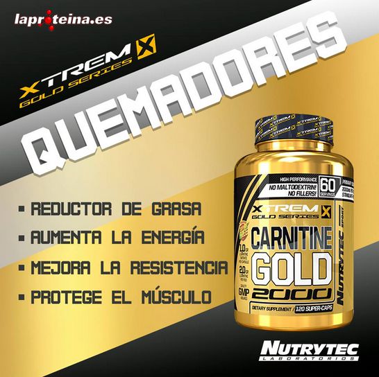 Carnitine Gold 2000 de Nutrytex Xtrem dentro de su nueva línea Gold Series, es un suplemento deportivo que contiene 1.000 mg de L-carnitina tartrato por cápsula, un compuesto responsable del mantenimiento del metabolismo energético en todas las células del organismo y que transporta los ácidos grasos a través de la membrana de las células hasta las mitocondrias donde son quemados para luego transformarse en energía.