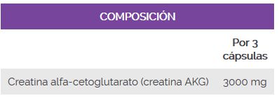Creatina alfa cetoglutarato (creatina AKG), harina de arroz y antiaglomerante (estearato de magnesio).