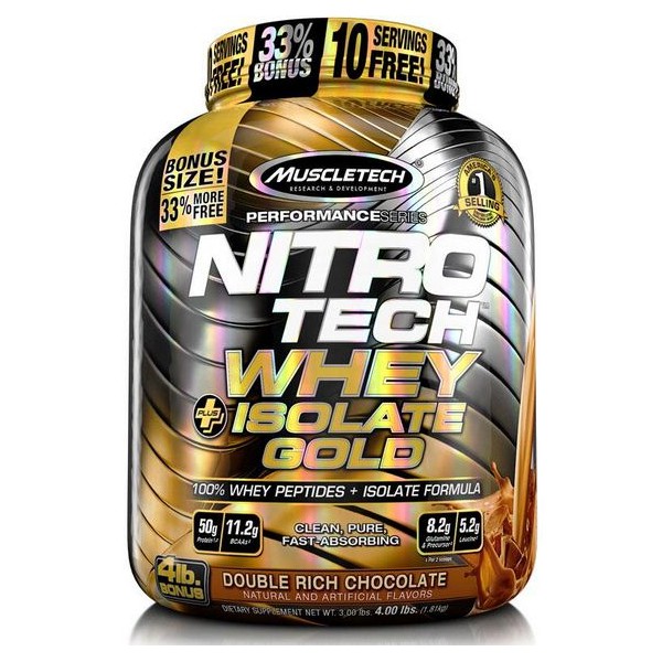 Presentamos la nueva Nitro Tech™ Whey + Isolate Gold, una fórmula que combina péptidos y aislado de suero de leche que se filtra en forma microscópica para eliminar los carbohidratos, grasas y lactosa mientras que al mismo tiempo se consigue retener una mayor cantidad de BCAAs, otros aminoácidos y glutamina.
