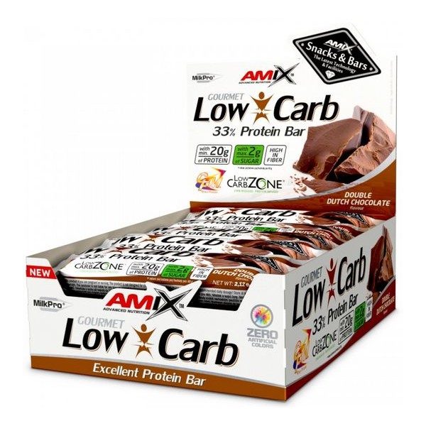 Low-Carb 33% Protein Bar de la marca nº1 en Europa Amix™ Nutrition son unas deliciosas y nutritivas barritas de 60 gramos con un 33% de proteína ideales para incrementar tu aporte proteico diario sin preocuparte por las calorías procedentes de los azúcares.