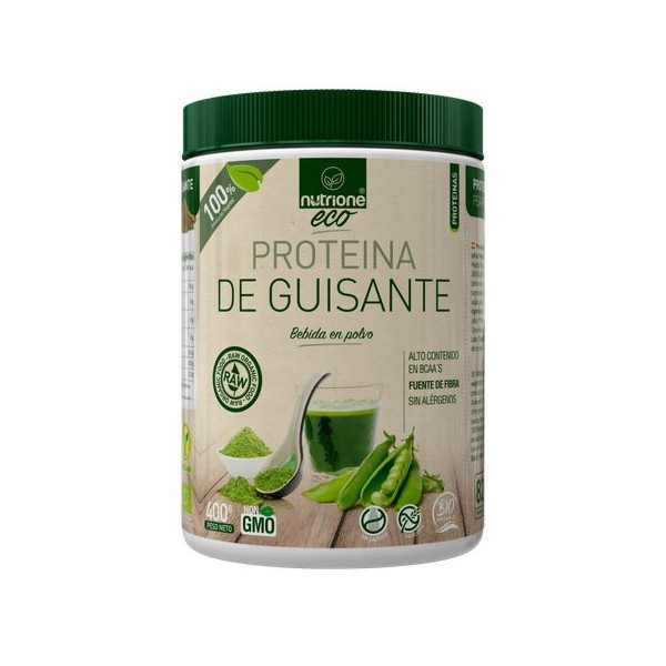 Proteína de Guisante de Nutrione Eco es un suplemento en polvo que contiene el 100% de proteína de guisante procedente de agricultura ecológica.