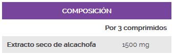 - Contiene una combinación de Alcachofa en polvo y de extracto de alcachofa (5% cinarina).