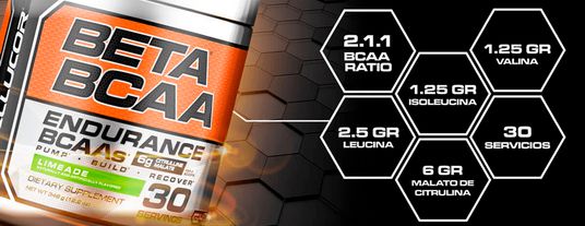 - Un suplemento dos en uno, con BCAAs, beta alanina y citrulina.