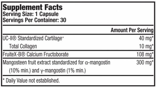 - Contiene cartílago estandarizado UC-II®, FruiteX-B® y extracto de fruta de mangostán.