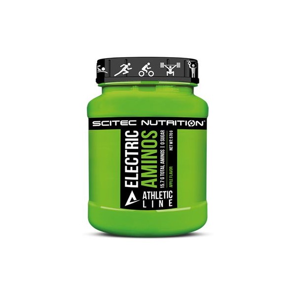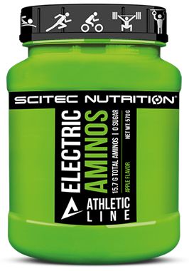 Electric Aminos de Scitec Nutrition dentro de su nueva línea para deportistas profesionales Athletic Line es un suplemento en polvo diseñado para antes o durante el entrenamiento para mejorar el rendimiento y la concentración mental gracias a una combinación de 15,7 gramos de aminoácidos y 3,2 gramos de un potente complejo energizante.