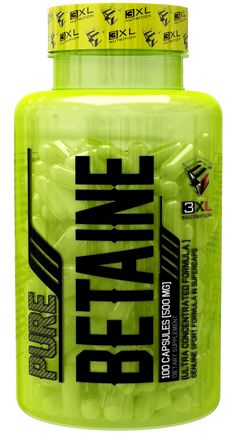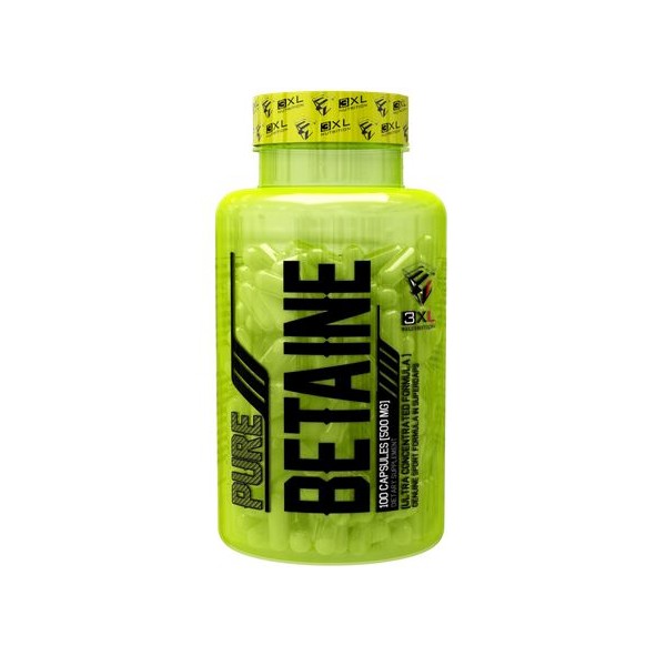 Pure Betaine de 3XL® Nutrition es un suplemento en cápsulas que proporciona 1.500 mg de betaína HCl por dosis de 3 cápsulas, un compuesto que tiene la capacidad de inducir una mayor acumulación de creatina en el interior de las células musculares.