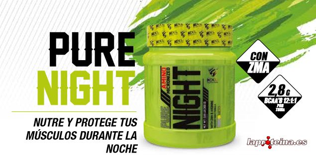Pure Night ha sido desarrollado para facilitar el descanso y la recuperación durante la noche. Su fórmula contiene una combinación de aminoácidos esenciales junto con minerales, ácido gamma-aminobutírico y vitamina b6. El efecto sinérgico de todos estos ingredientes consigue estimular un sueño más profundo a la vez que aporta a las fibras musculares los nutrientes que necesitan para su crecimiento y recuperación.