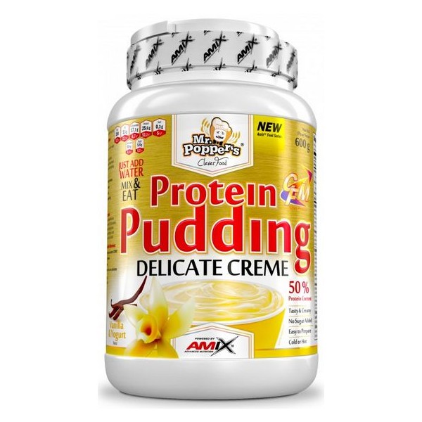Mr. Popper‘s® Protein Pudding Cream de Amix es un exquisito y delicadamente cremoso postre compuesto por una mezcla única de proteínas de calidad con un contenido mínimo de 25 gramos de proteína por dosis.