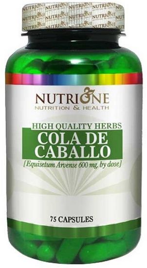 Cola de Caballo de NutriOne Nutrition & Health contiene 600 mg de cola de caballo (Equisetum Arvense) por dosis de 2 cápsulas.