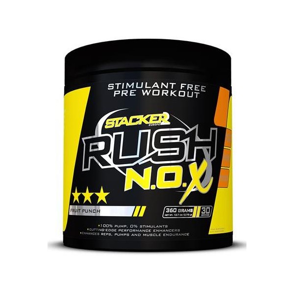 Rush N.O.X. de Stacker2 Europe es una versión sin estimulantes del potente pre-entreno Rush, uno de los productos para antes de entrenar más populares y galardonados de los últimos tiempos.