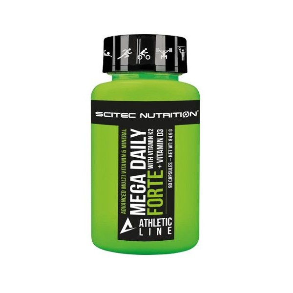 Mega Daily Forte proporciona 26 ingredientes que satisfacen las necesidades de los atletas serios con una composición cuidadosamente formulada. Presenta una alta dosis de complejo de vitamina B y vitamina C, además de minerales esenciales como el magnesio, el selenio y el zinc, además contiene una alta cantidad de vitamina D3, vitamina E y vitamina K2 añadida.