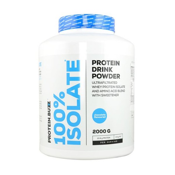 100% Isolate de Protein.Buzz es un suplemento en polvo con edulcorantes que contiene proporciona 21 gramos proteína procedente exclusivamente de aislado de suero de leche con BCAAs añadidos, L-Glutamina y otros aminoácidos importantes.