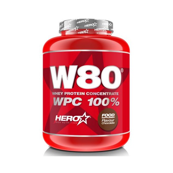 W80® WPC 100% Whey Protein Concentrate de Hero Tech Nutrition contiene solamente concentrado de proteína de suero de leche de la más alta calidad, con una alta tasa de absorción, gran solubilidad y alta biodisponibilidad de aminoácidos, obtenida mediante un proceso de ultrafiltrado.