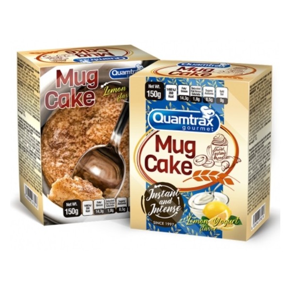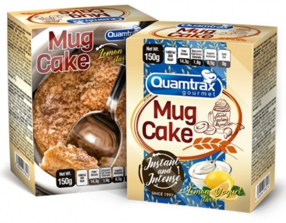 Mug Cake de Quamtrax Gourmet es un preparado en polvo para preparar exquisitos, esponjosos y muy saludables bizcochos ricos en proteínas, procedentes de la proteína concentrada de leche, proteína de arroz y harina de garbanzo.