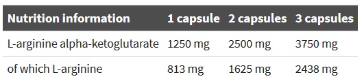 1.250 mg de arginina alfa-cetoglutarato (AAKG) por cápsula.
