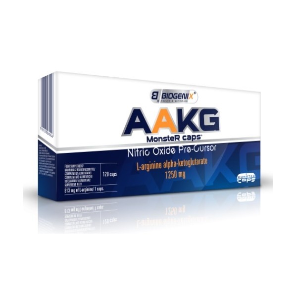 AAKG MonsteR caps® de Biogenix Health & Nutrition es un suplemento en cápsulas que te proporciona 1.250 mg de arginina alfa-cetoglutarato (AAKG) por cápsula, un aminoácidos capaz de aumentar la producción de óxido nítrico.
