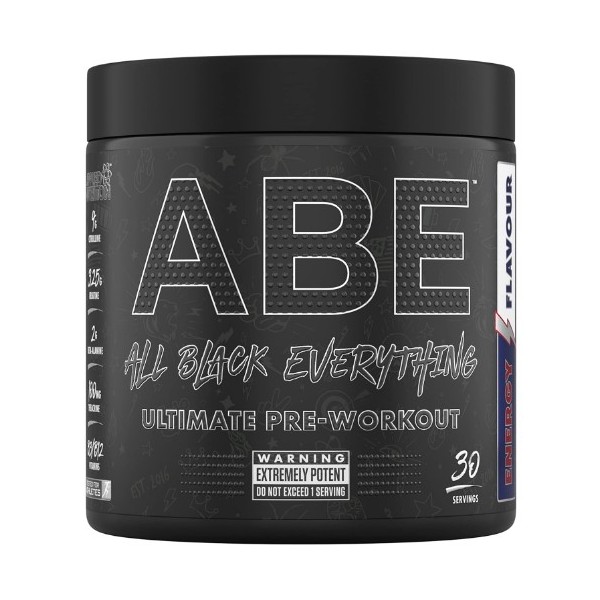 ABE - All Black Everything de Applied Nutrition es un suplemento en polvo de pre-entrenamiento con una combinación única con los ingredientes activos más importantes para mejorar tu rendimiento físico y mental durante el entrenamiento.