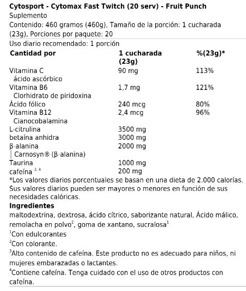 Advertencia: No lo use si es sensible a la cafeína. Algunas personas pueden experimentar una sensación de hormigueo después de consumir productos que contienen beta-alanina.