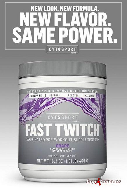 Fast Twitch de Cytosport es un suplemento de pre-entrenamiento en polvo que contiene una mezcla de L-citrulina, betaína anhidra, CarnoSyn® beta alanina, taurina, cafeína, vitaminas y minerales para ayudarte a mejorar la intensidad gracias a una mayor energía y proporcionarte unos poderosos bombeos musculares para un máximo rendimiento durante su entrenamiento.