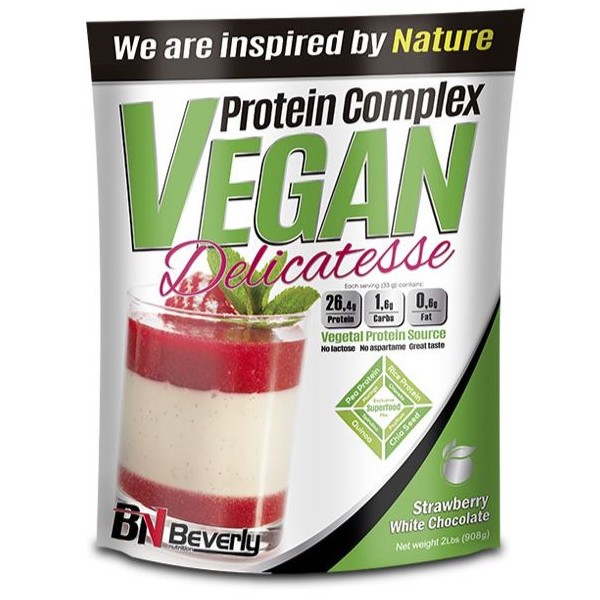 Protein Complex Vegan Delicatesse de Beverly Nutrition es un suplemento en polvo que contiene una mezcla de proteínas vegetales del más alto valor biológico, procedente de guisante y arroz, que además está enriquecida con el complejo "Exclusive Superfood Mix" que incluye quinoa, chlorella, semillas de chía, spirulina, moringa, psyllium y salvado de trigo.