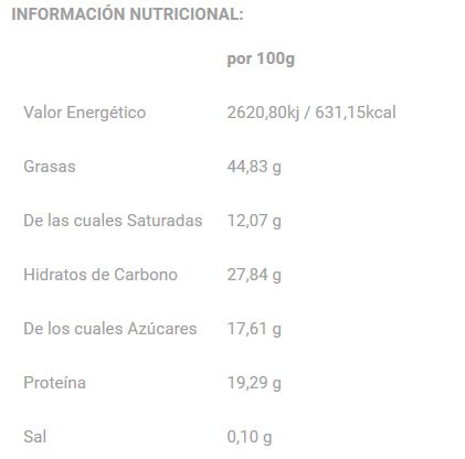 - Elaborada a base de un 95% de anacardos y un 5% de aceite de girasol.