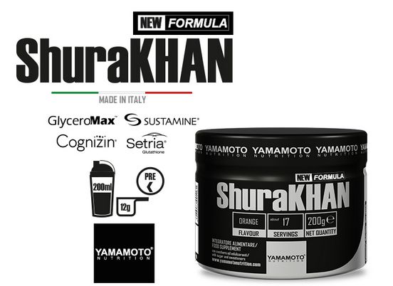 ShuraKhan de Yamamoto® Nutrition es un pre-entreno en polvo de nueva generación diseñado para proporcionarte una energía explosiva, bullying y concentración mental durante el entrenamiento gracias a la utilización de nuevos compuestos como Cognizin®, Setria®, GlycerolMax™ o Sustamine®, además de los extractos de remolacha y rodiola, citrulina, beta alanina y propionil L-carnitina.