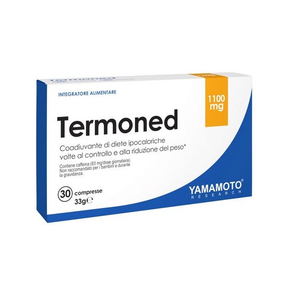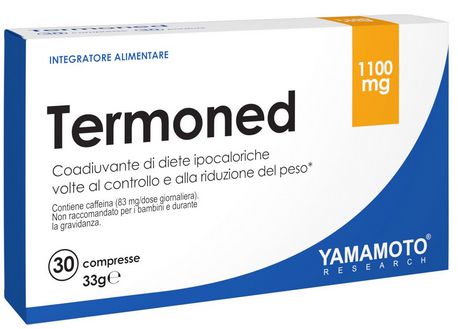 Termoned® de Yamamoto® Nutrition es un suplemento en tabletas a base de extractos vegetales (garcinia, naranja amarga, cóleo, guggul, sauce blanco, guaraná) y cafeína, con vitaminas B1, B2 y B2, diseñado para ayudar a una reducción y control del peso en dietas hipocalóricas.