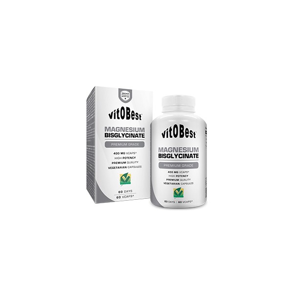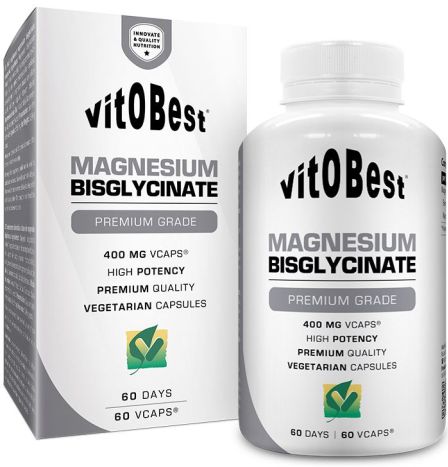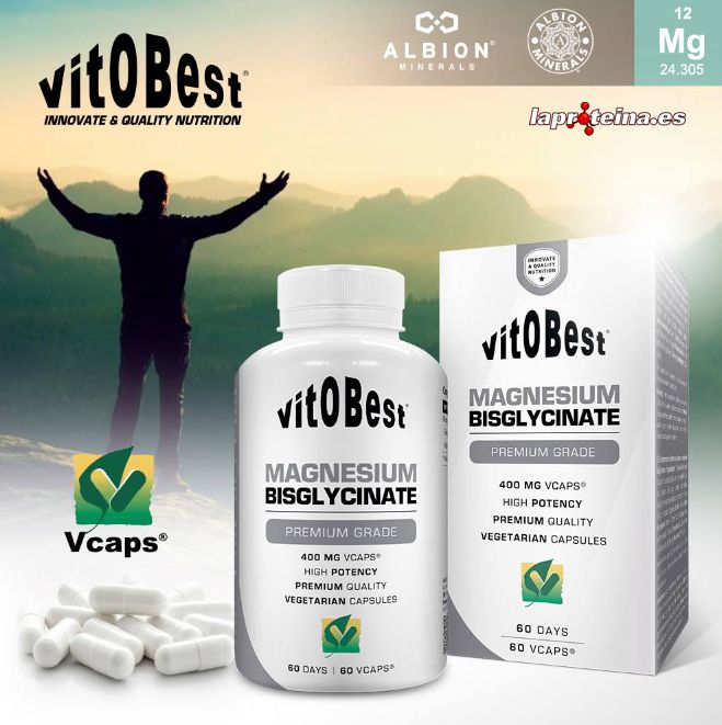 Magnesio Bisglicinato de VitOBest es un suplemento en cápsulas que proporciona 400 mg de magnesio aminoquelado de Albion® por dosis de 1 cápsula, una forma especial de magnesio orgánico con el porcentaje más alto de absorción.