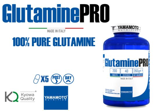 Glutamine PRO de Yamamoto® Nutrition es un suplemento en tabletas que proporciona 5 gramos de L-glutamina por dosis de 5 tabletas, con la calidad reconocida mundialmente de Kyowa® Quality.