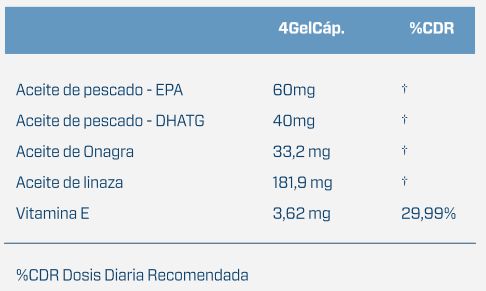 - Proporciona una combinación de aceite de pescado, onagra y semillas de lino.