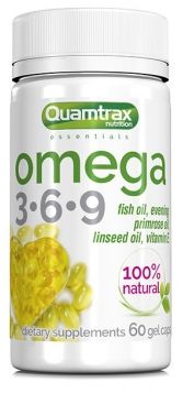 Omega 3-6-9 de Quamtrax Nutrition es un suplemento en perlas que proporciona una combinación de aceite de pescado (rico en EPA y DHA), aceite de onagra y aceite de semillas de lino, enriquecido con vitamina E natural.