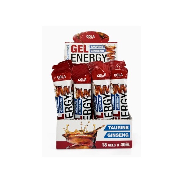 Energy Gel Taurina de Quamtrax Nutrition son unos geles energéticos con un refrescante sabor a cola elaborados con diferentes tipos de carbohidratos de absorción rápida que favorecen de manera inmediata la recuperación del glucógeno, por lo que son ideales tanto para proveer de un aporte energético explosivo como de una gran recuperación casi inmediata.