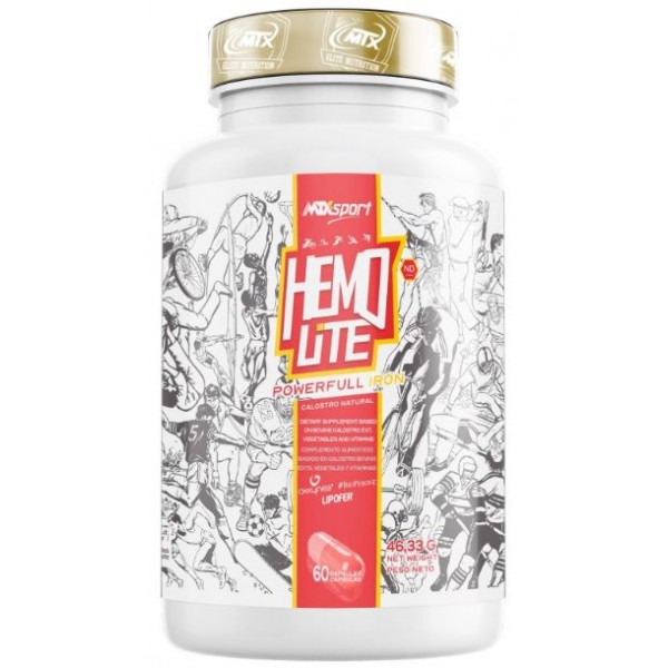 HemoLite de MTX Sport es un novedoso suplemento en cápsulas que contiene una poderosa combinación de hierro Lipofer® (Pirofosfato Férrico 85 mg Fe/g) microencapsulado en una matriz que lo protege del pH ácido del estómago.