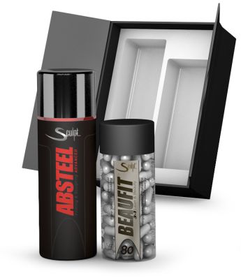 Beauty Box: Absteel® Advanced + BeauFit de Sculpt - Open Innovation es un pack especial para hombres que combina una crema reductora de abdomen para hombres con un suplemento quemador de grasas tres en uno, capaz de aumentar tu energía, regular el agua corporal y rejuvenecerte al mismo tiempo gracias a su poder antioxidante.