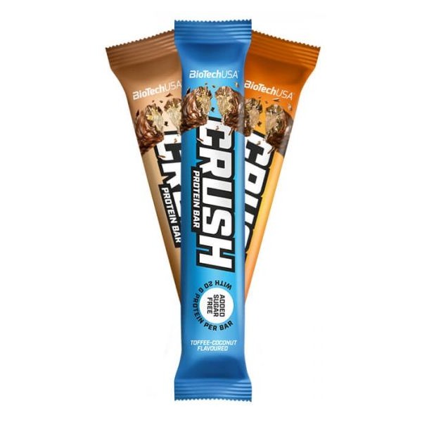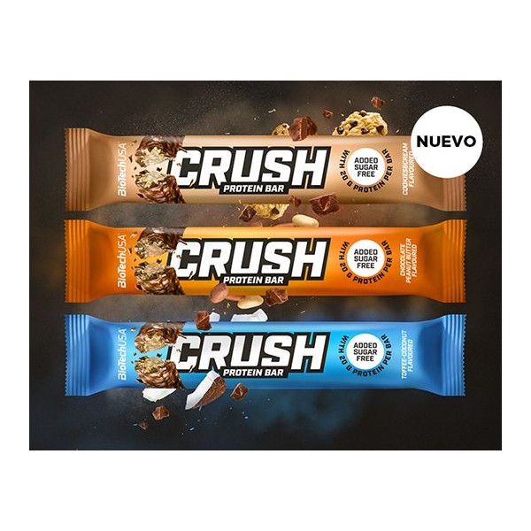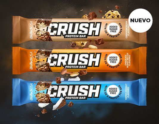 Las nuevas barritas Crush Protein Bar de BioTech USA son unas deliciosas barritas multicapas de 64 gramos altas en proteínas y sin azúcares añadidos que se presentan en 3 exquisitas versiones con sabor a cookies & cream, chocolate-mantequilla de cacahuete y o toffe-coco.