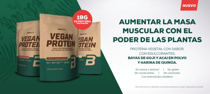 Por eso, Biotech USA lanza al mercado Vegan Protein, una proteína que cumple con los dos requisitos que cualquier persona que tengas los problemas anteriormente citados y entrene con seriedad le pediría a una proteína: que sea de origen totalmente vegetal y que su perfil de aminoácidos cubra las necesidades musculares para mejorar esa recuperación y acelerar el crecimiento muscular magro.