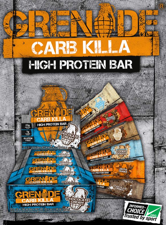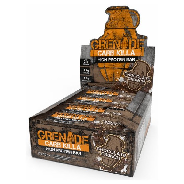 Necesitamos carbohidratos para conseguir la energía y el combustible que necesitas para tus entrenamientos o en tu día a día. Pero demasiados carbohidratos, desafortunadamente pueden conducir a unas indeseables ganancias de peso y acumulaciones de grasa. Si buscas un snack rico en proteínas y bajo en carbohidratos que se ajuste a tu estilo de vida fitness, ármate con un arma mata carbos… ¡la barrita Carb Killa® de Grenade!